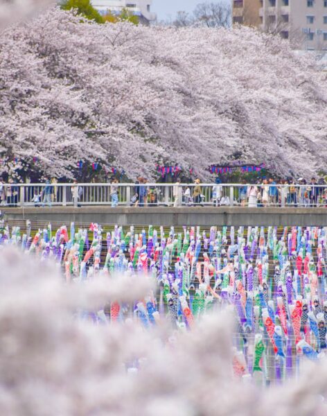 約4000匹のこいのぼりが館林市の空を舞います!桜の開花時期とタイミングを合わせて訪れると、桜とこいのぼりの競演をお楽しみいただけます。